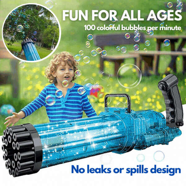 BubbleTop – Large bubble making toy. Endless fun for your children! Bubble making toy that can make hundreds of colorful bubbles in one minute. Material: PP. The best party toy. Bubbles making toy produces mesmerizing lighting effects and a beautiful stream of bubbles to keep the young ones thrilled for hours.. Automatic bubbles making. The battery operated toy creates numerous colorful bubbles with just a click of a button. No need to blow in stick or make the mixture; the bubbles will constantly come out from this toy.. Suitable for smaller kids. With two handles, the lightweight bubbles maker can easily be carried by small children. This clever design allows the kids to aim the toy in the direction they want and play for hours.. Perfect for outdoor parties. Make kids birthday parties or other special event fabulous with beautiful bubbles. This bubble making toy will be a HIT on every occasion in your garden or in the park.. Two versions, same fun. With two models you can choose between a bubble-making toy with 12 holes with liquid, light, and music, or a bubble-making toy with 21 holes (with liquid and light)..